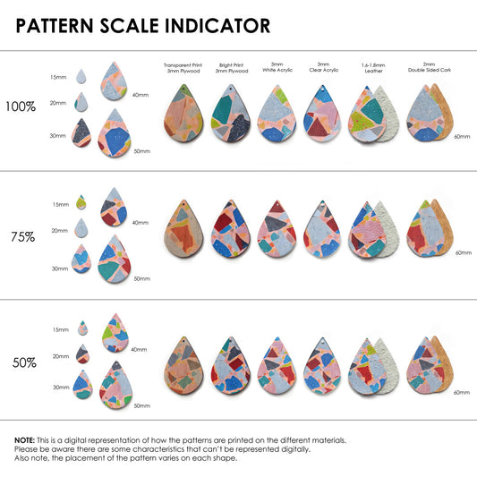 EACH MATERIAL AVAILABLE IN EITHER PRE-CUT EARRING SHAPES OR BY THE SHEET.