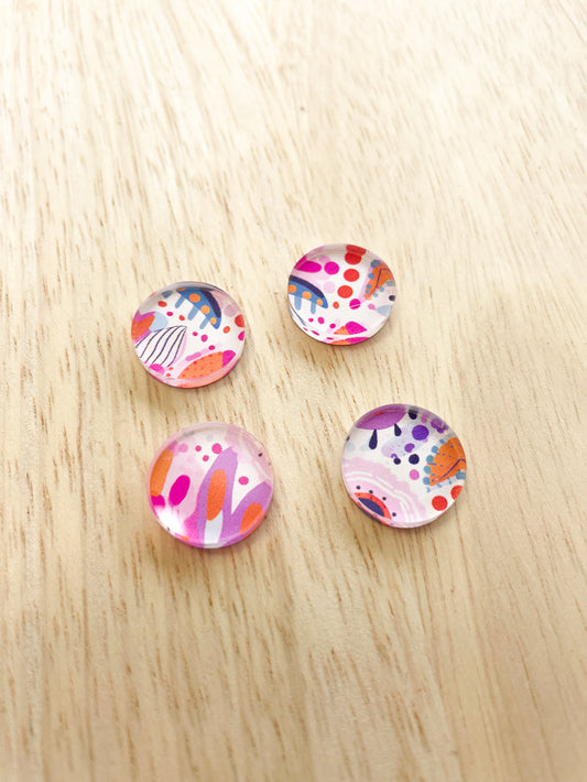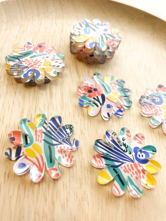 Clear Acrylic - 1.5cm Circle - Studs - Bold Floral - 19