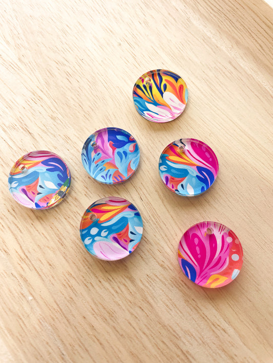 Clear Acrylic - 3cm Circle - 1 Hole - Watercolour - 107