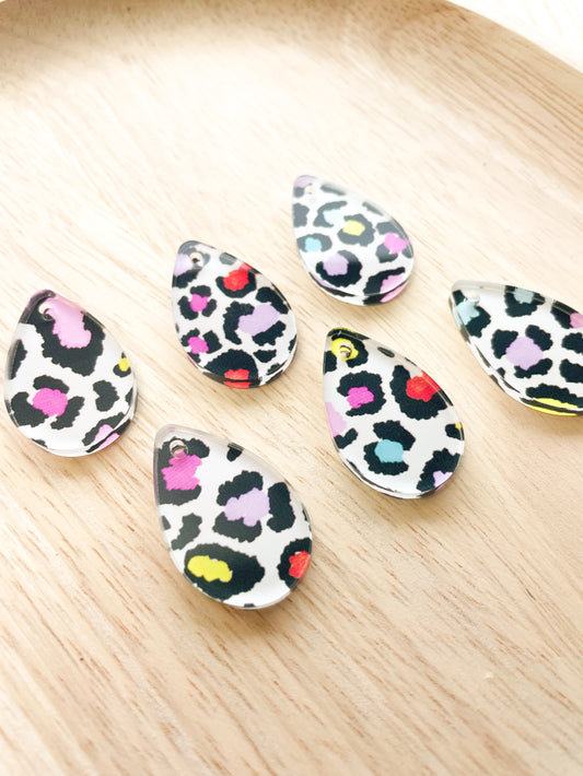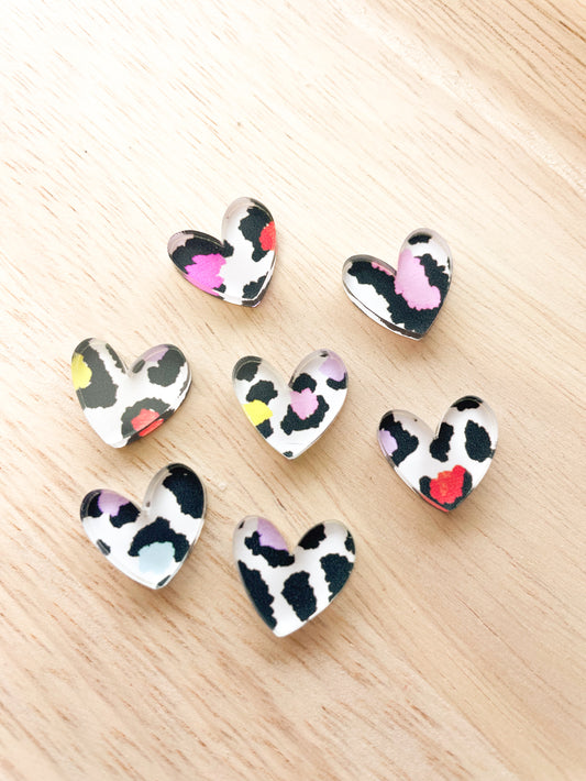 1.5cm Heart 2 - Studs- Clear Acrylic - Leopard - 18