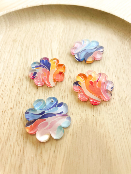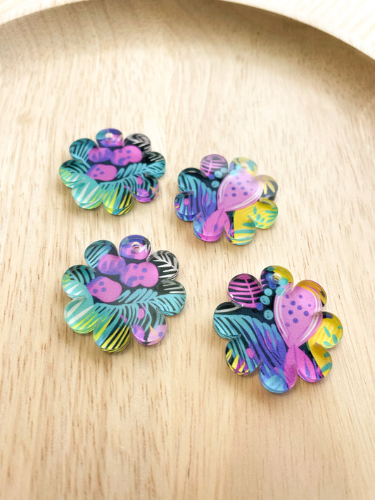 Flower - 3x3cm - 1 Hole - Clear Acrylic - Abstract Art - 03