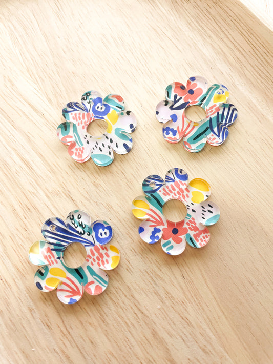 Daisy - 3x3cm - Clear Acrylic - 1 Hole - Abstract Art - 62