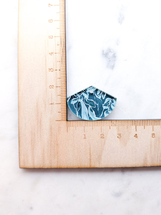 1.5cm Circle - Studs- Clear Acrylic - Abstract Floral - 67