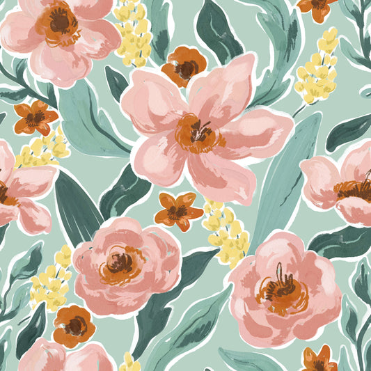 1.5cm Circle - Studs- Clear Acrylic - Bold Floral - 92