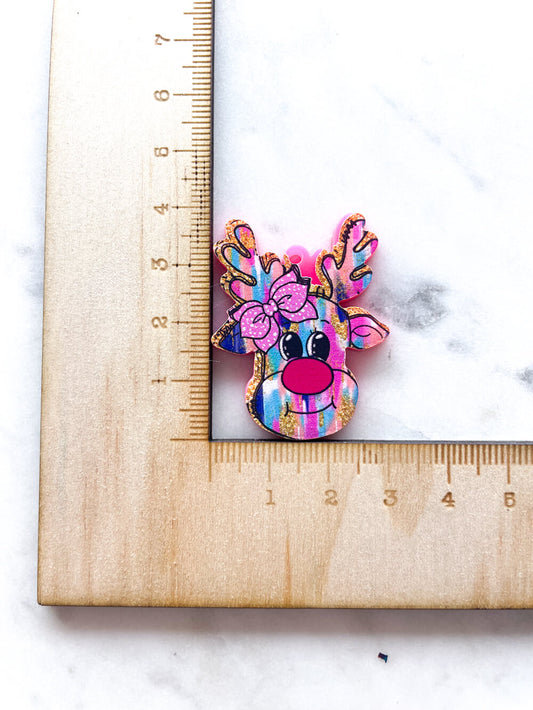 Large - Brushstroke Rudolf Reindeer on Bright Pink