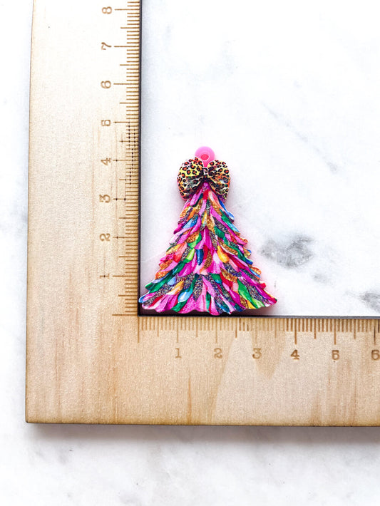 Large - Glitter Christmas Tree on Bright Pink Acrylic