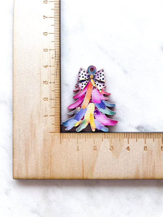 Large - Watercolour Christmas Tree 6 on Baby Pink Acrylic