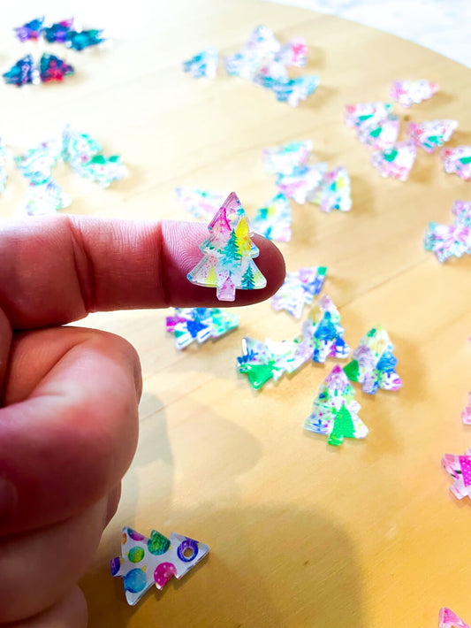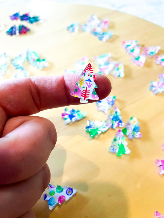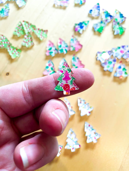 Clear Acrylic - 2cm Christmas Tree - Studs - Christmas - 307