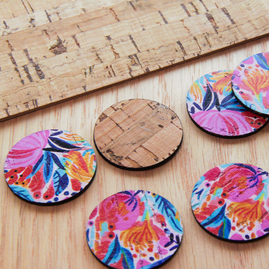 Cork - 30mm - Circle - Bold Floral - 53
