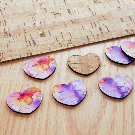 Cork - 30mm - Heart - Alcohol Ink- 09