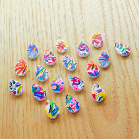 White Acrylic - 2cm - Teardrop 2 Shape - Bold Floral - 54