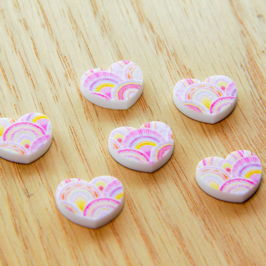 White Acrylic - 15mm Heart- Studs - Watercolour - 10