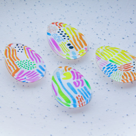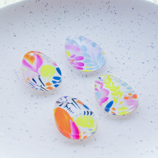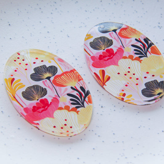 Clear Acrylic - Egg - 3x2cm - 1 Hole - Bold Floral - 80