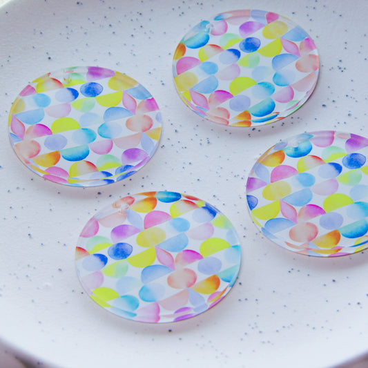 Clear Acrylic - 4cm Circle - 1 Hole - Watercolour - 20