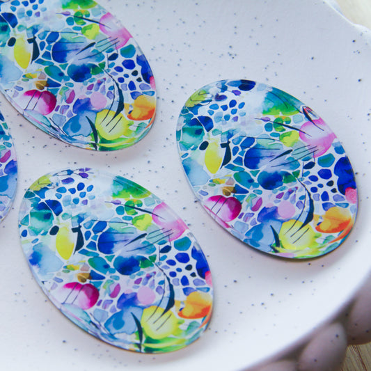 Clear Acrylic - 6cm Oval - 1 Hole - Watercolour - 49