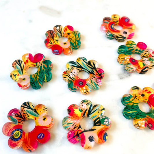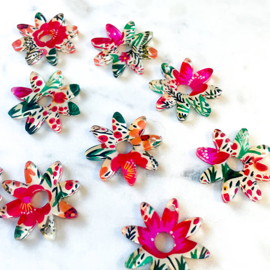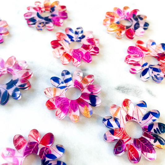 Clear Acrylic - 3cm - Flower with large hole - 1 Hole - Bold Floral - 74