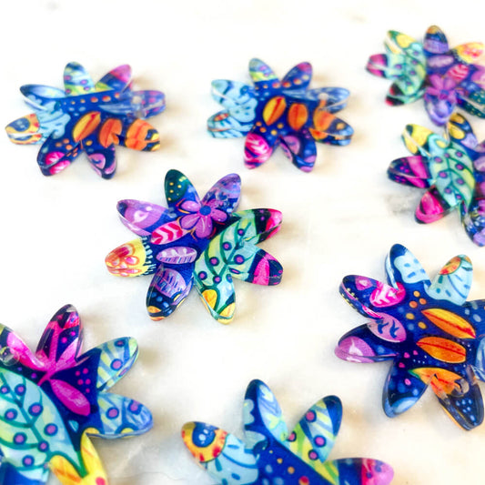Clear Acrylic - 3cm - Flower - 1 Hole - Bold Floral - 77