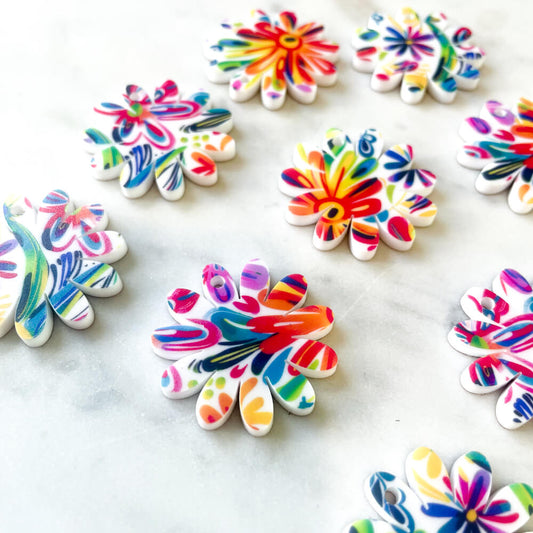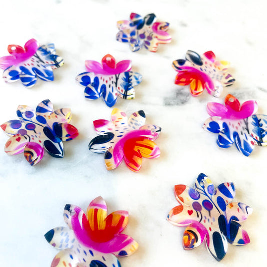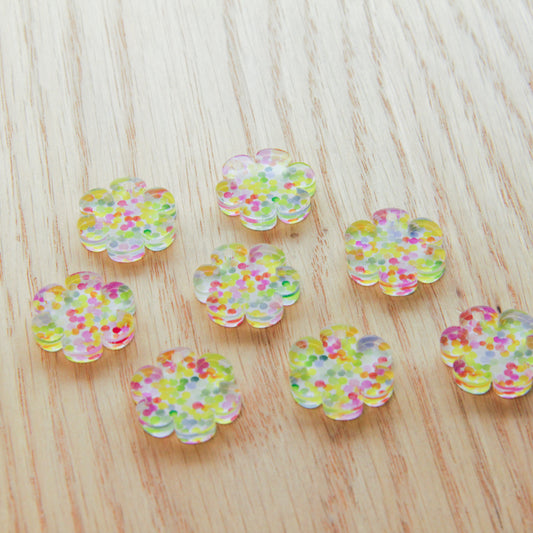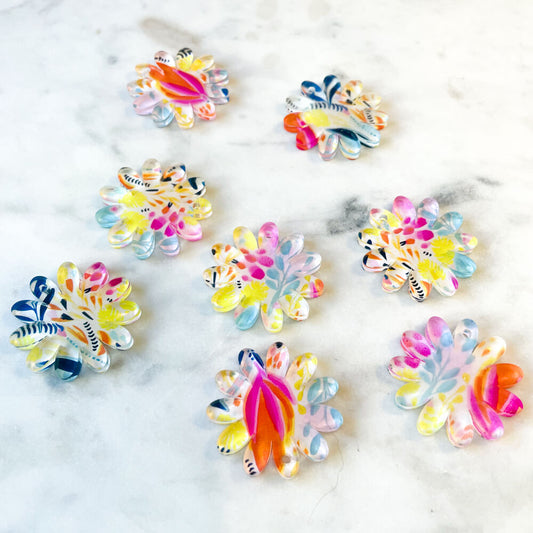 Clear Acrylic - 2cm Flower 2 - 1 Hole - Watercolour - 11