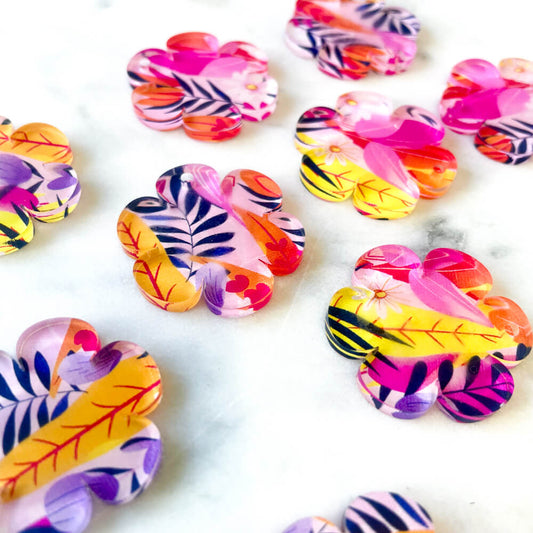 Clear Acrylic - 2cm Flower with large hole - 1 Hole - Summer Nights - 19