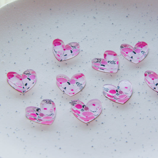 Clear Acrylic - 1.5cm Heart 2 - Studs - Abstract Floral - 31