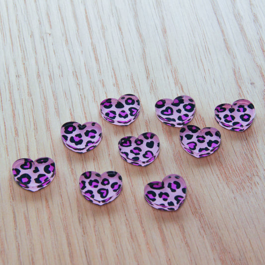 Clear Acrylic - 1.5cm Heart - Studs - Heart Leopard - 01