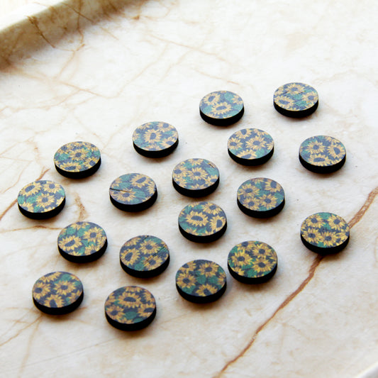 Wood - 15mm Circle- Studs - Transparent print - Sunflower - 01