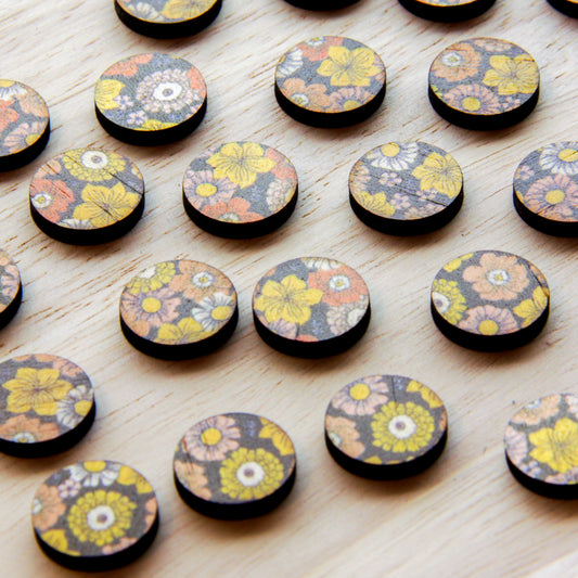 Wood - 15mm Circle- Studs - Transparent print - Groovy - 03