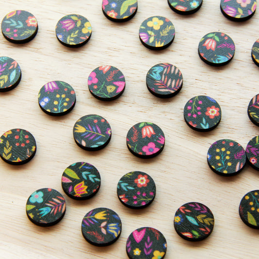 Wood - 15mm Circle- Studs - Transparent print - Mexican Floral - 01