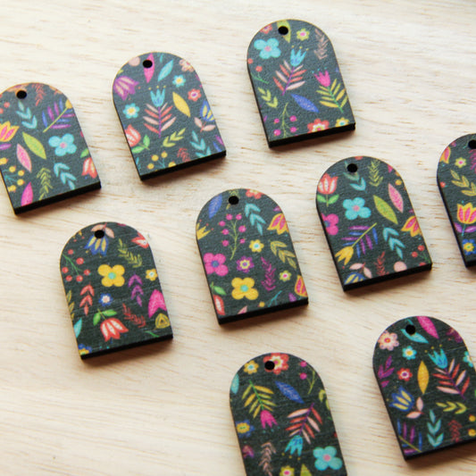 Wood - Small Arch- 1 Hole (top) - Transparent print - Mexican Floral - 01