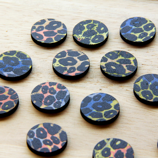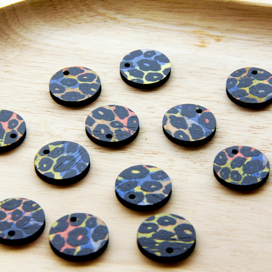 Wood - 20mm Circle- 1 Hole - Transparent print - Leopard - 78