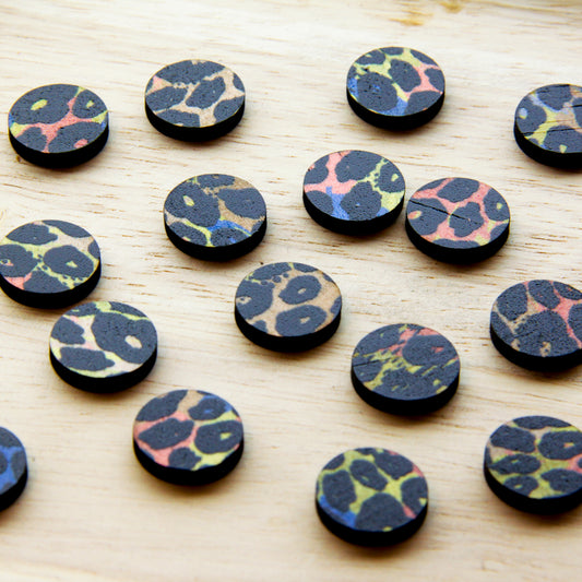 Wood - 15mm Circle- Studs - Transparent print - Leopard - 78