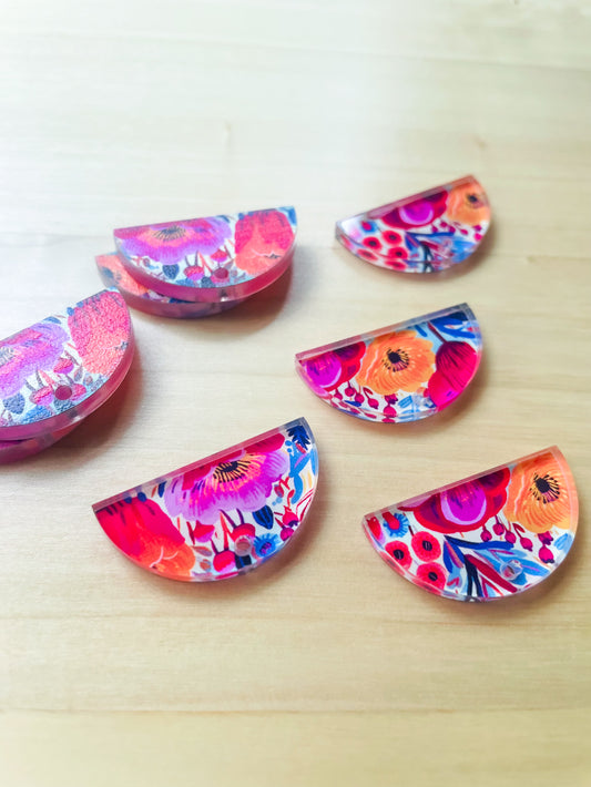 3x1.5cm - Semi Circle - Clear Acrylic - 1 Hole at Top - Bold Floral - 64