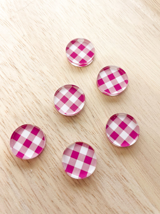 1.5cm Circle - Studs- Clear Acrylic - Basic Gingham - 17