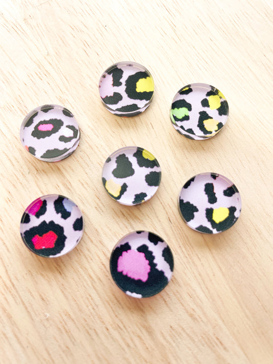 Clear Acrylic - 1.5cm Circle - Studs - Leopard - 20