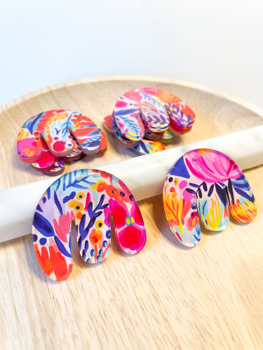 Boho Shape - 4x3.6cm - Clear Acrylic - 1 Hole - Bold Floral - 53