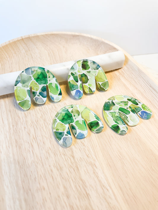Clear Acrylic - 1.5cm Circle - Studs - Watercolour - 107