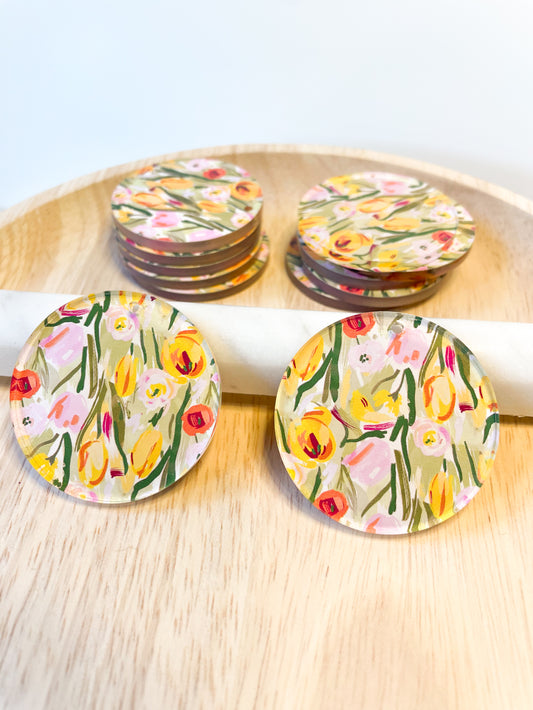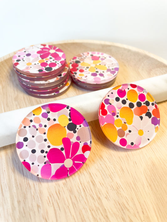 Clear Acrylic - 4cm Circle - 1 Hole - Floral Garden - 52