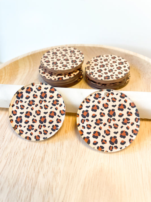 Clear Acrylic - 4cm Circle - 1 Hole - Leopard - 63