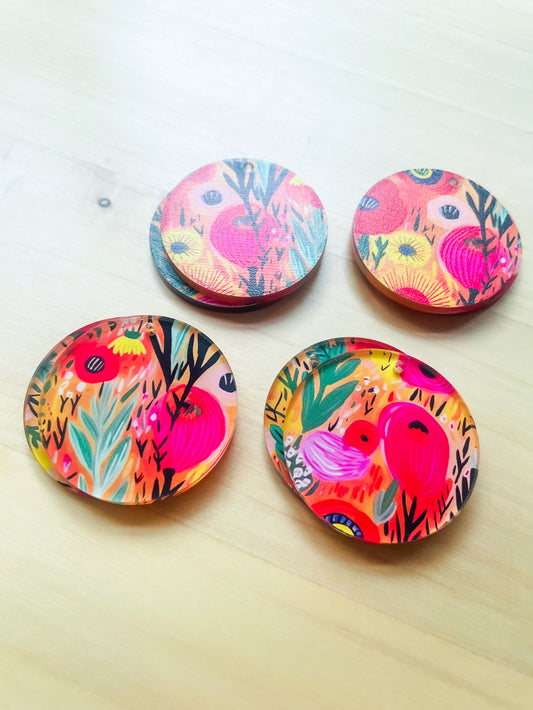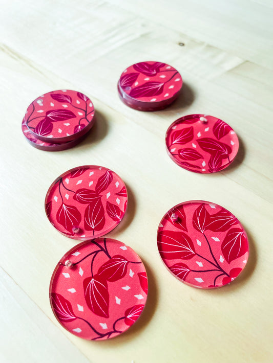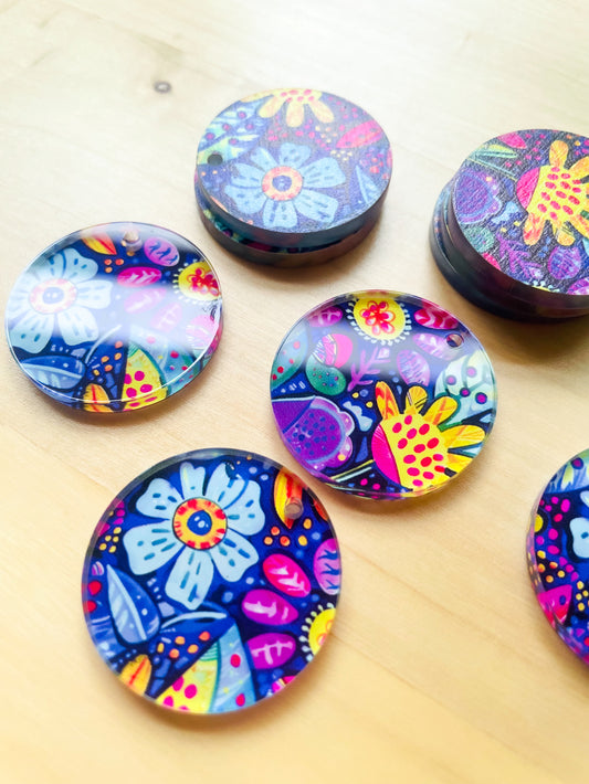 3cm Circle - Clear Acrylic - 1 Hole - Bold Floral - 94