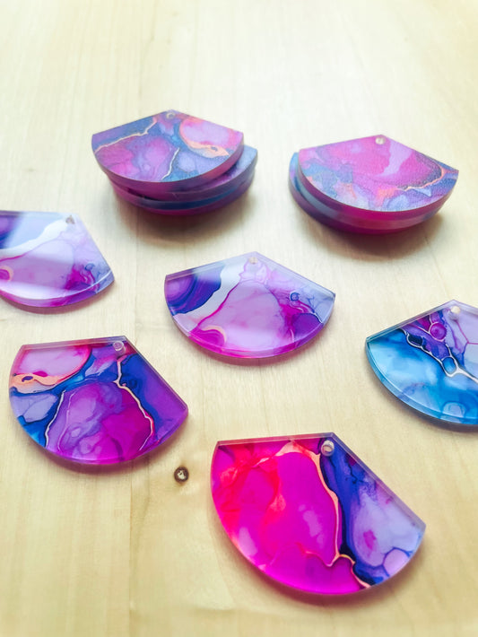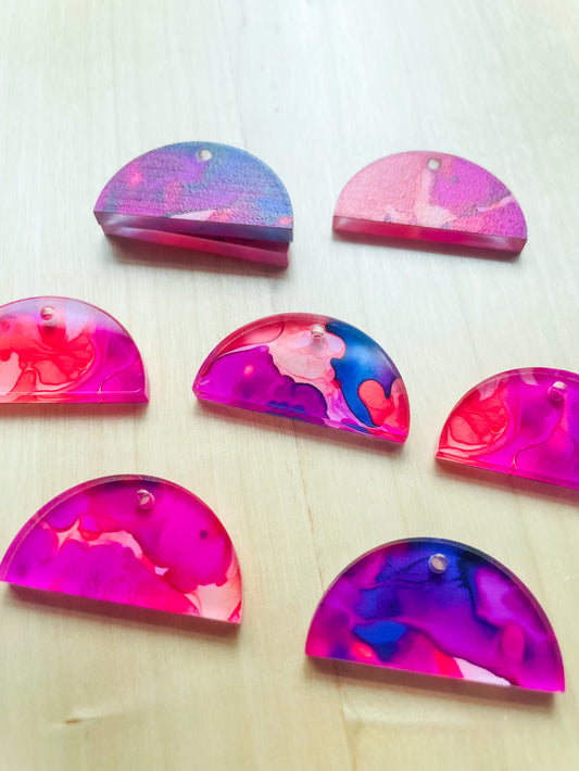3x1.5cm - Semi Circle - Clear Acrylic - 1 Hole at Top - Alcohol Ink - 18