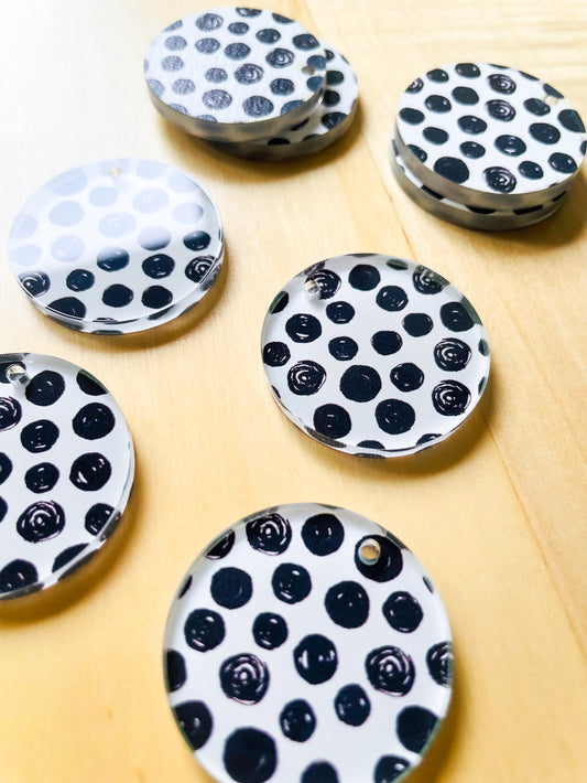 3cm Circle - Clear Acrylic - 1 Hole - Black and White - 24