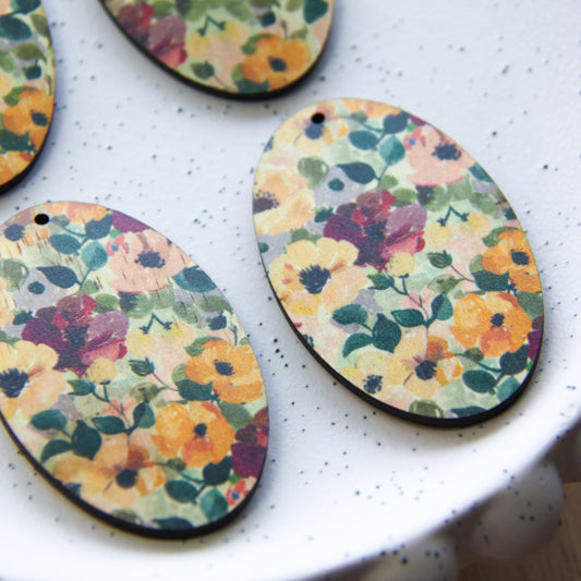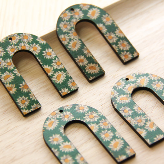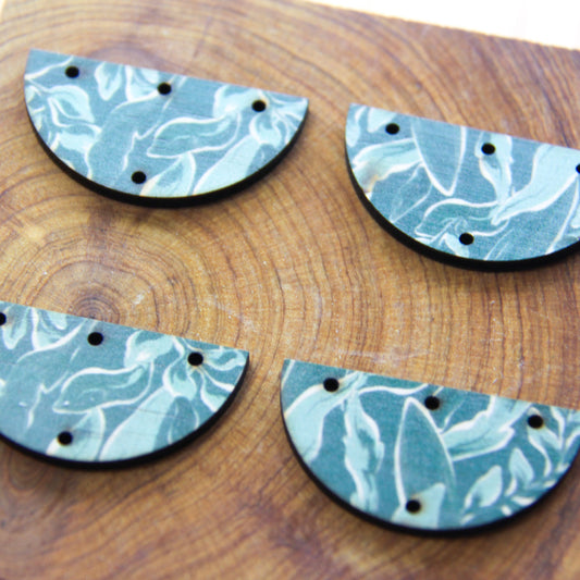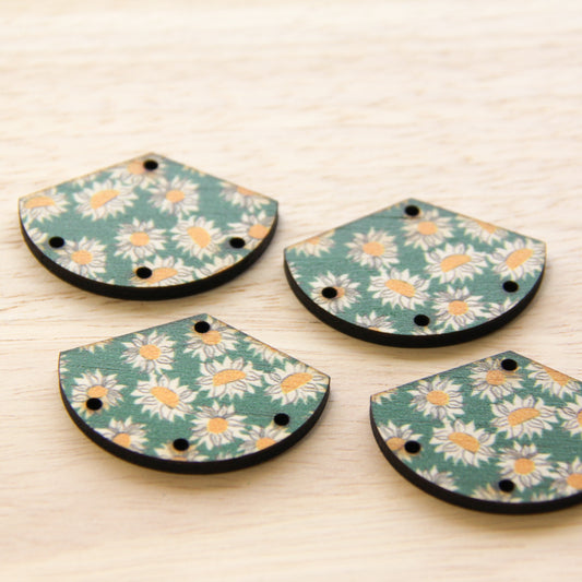 Wood - 4cm Semi Circle - 1 Hole - Transparent print - Floral Garden - 51