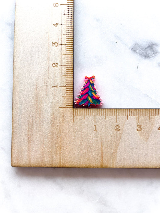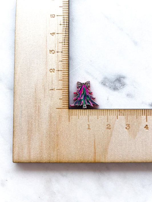 Studs - Brushstroke Christmas Tree 12 on Bright Pink Acrylic