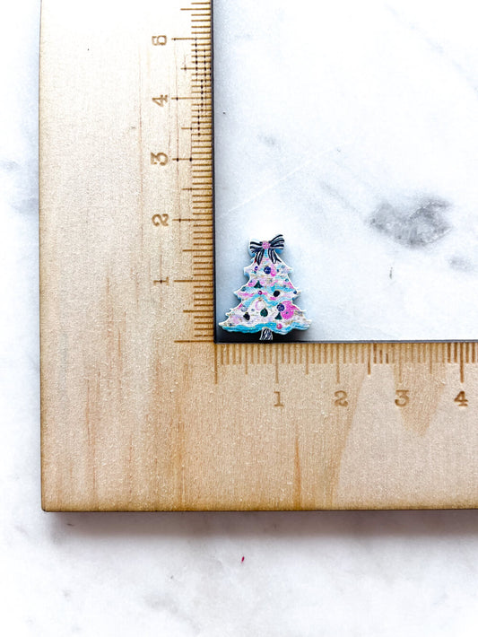 Studs - Watercolour Christmas Tree 6 on Baby Pink Acrylic