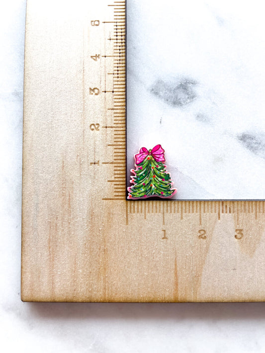 Studs - Glitter Christmas Tree on Bright Pink Acrylic
