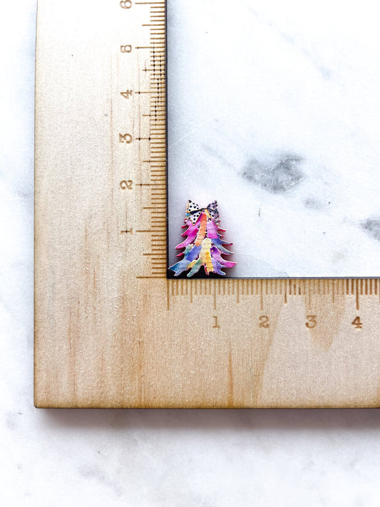 Studs - Watercolour Christmas Tree 2 on Raspberry Acrylic