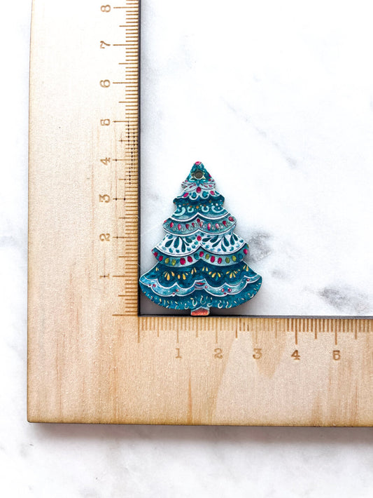 Studs - Folk Christmas Tree on Muted Green Acrylic