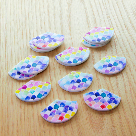 White Acrylic- 3cm Fan - 1 Hole - Watercolour - 17