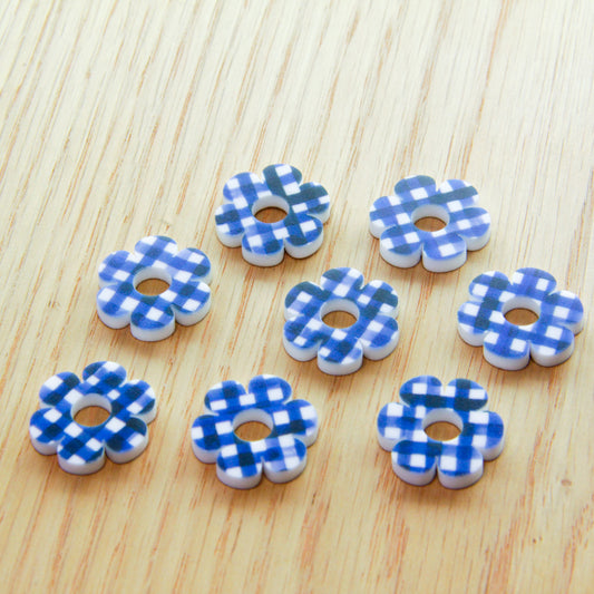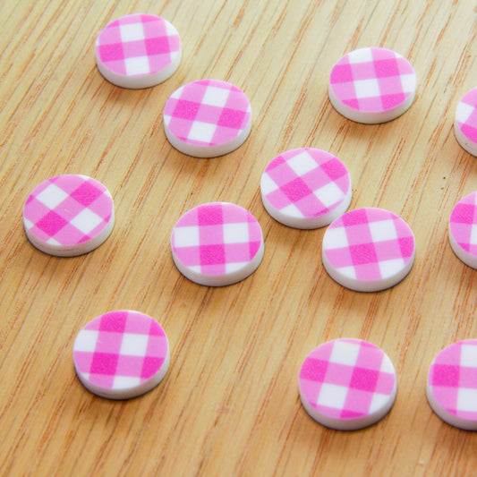 White Acrylic - 15mm Circle- Studs - Diagonal Gingham - 15