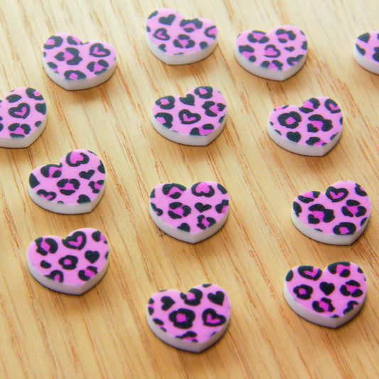 White Acrylic - 15mm Heart- Studs - Heart Leopard - 02